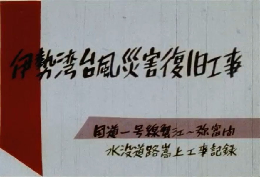 伊勢湾台風災害復旧工事 国道一号線蟹江~弥冨間 水没道路嵩上工事記録 企画:日本鋪道 本作品は、昭和34年9月に伊勢湾台風で水没した国道一号(蟹江~弥富間・約5.1km)の緊急嵩上工事を記録した映像です。限られた時間の中で進められた復旧工事では、周辺地域への影響を抑える工夫や、新たに開発された重機の稼働にも耐えられるドラム缶による「のり止め工法」などが紹介されています。昭和34年当時の様子を伝える、貴重なカラー映像です。 |