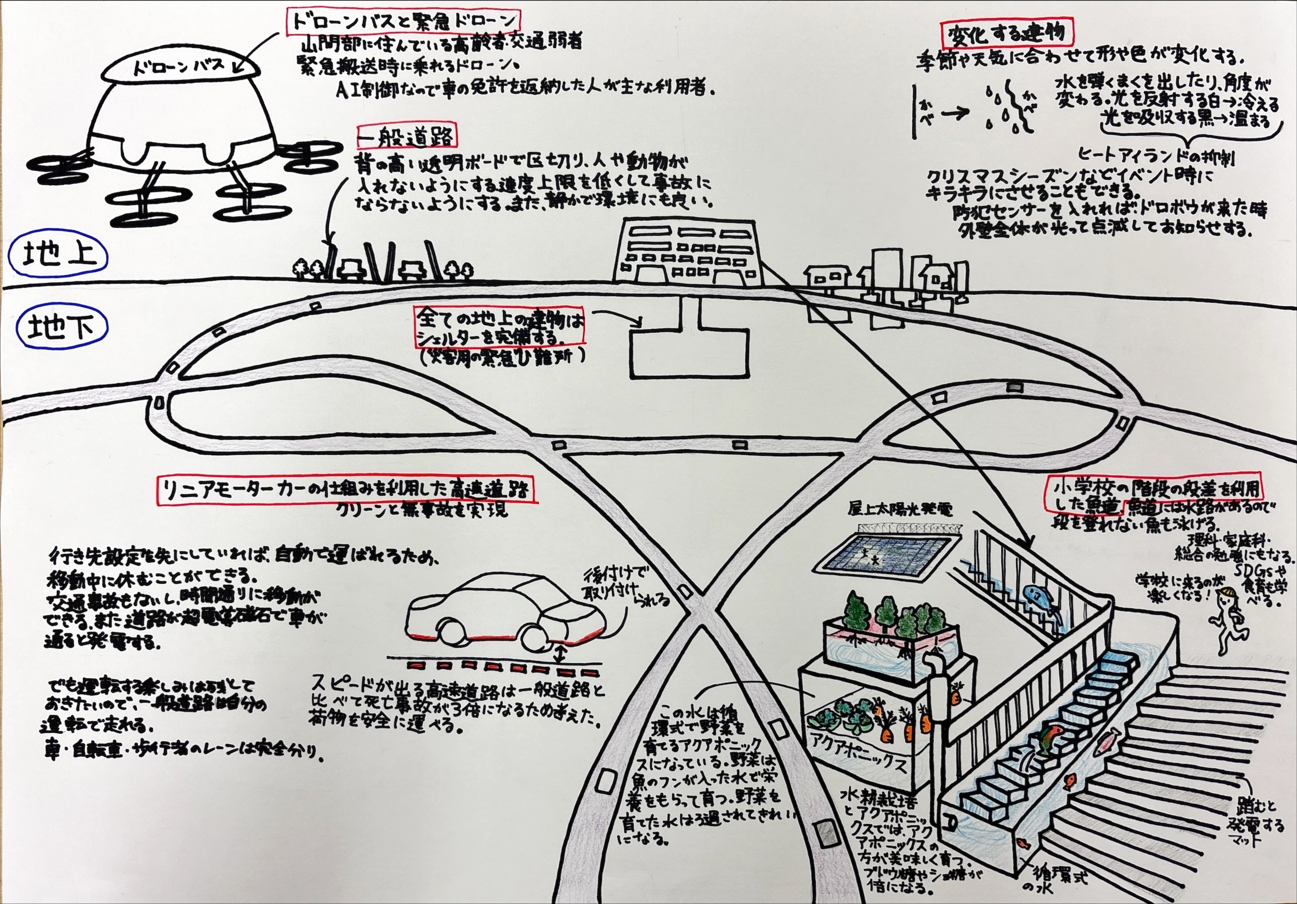 氏名 タイトル 作品 葵 晴友希 さん(東京都) リサイクルシティー 墫 優佳里 さん(山形県) 山と雪を活かした街づくり 兒玉 紗知 さん(埼玉県) サステナブル・セーフシティ 竹内 瑶絵 さん(兵庫県) まんまるハウスが集う移動できるまち~コロコロ転がり関わり合う~