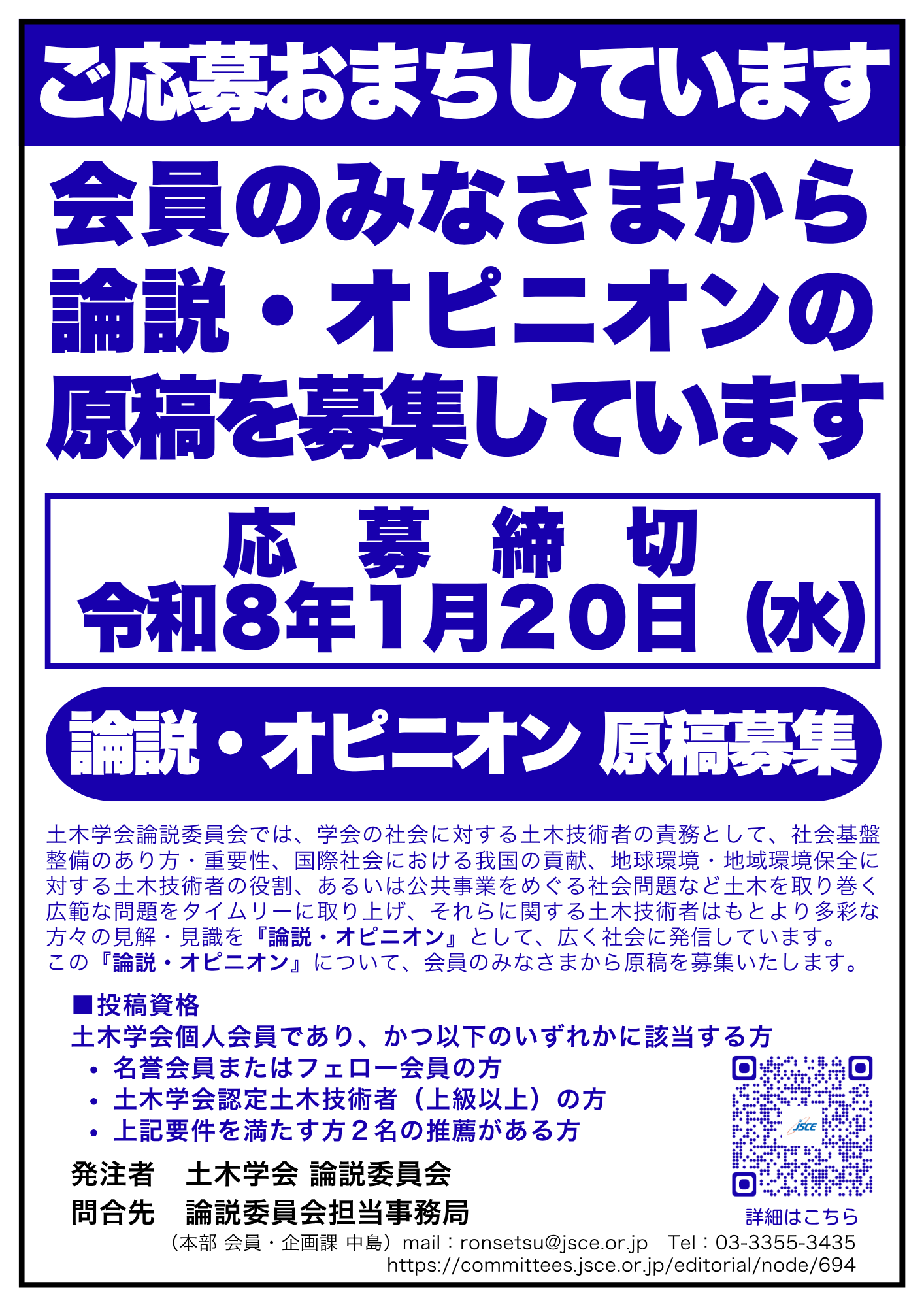 募集:2025年11月20日(木)~2026年1月20日(火) 委員会採択(2~3月) 掲載時期:2026年4月(HP)・2026年6月(学会誌)